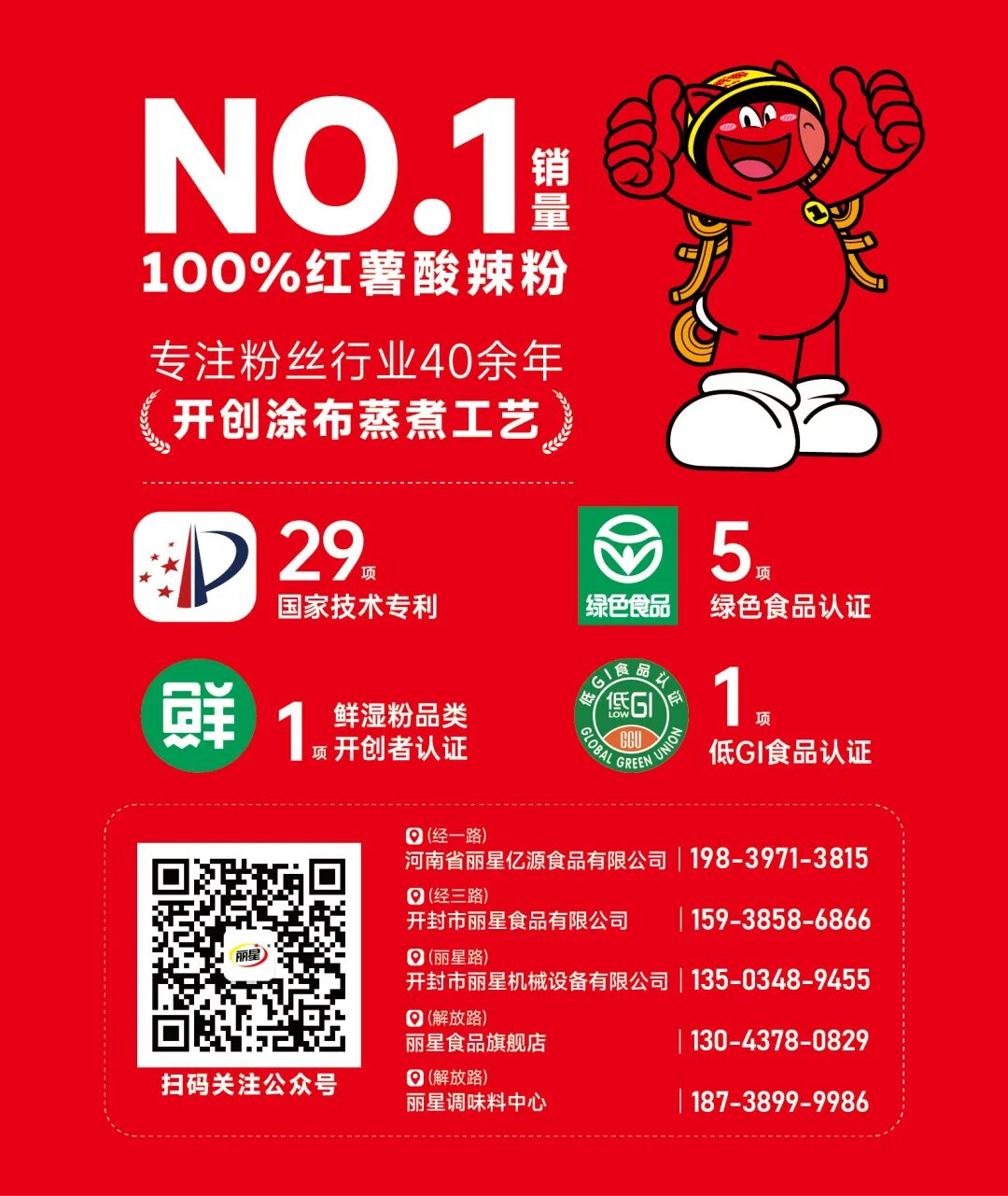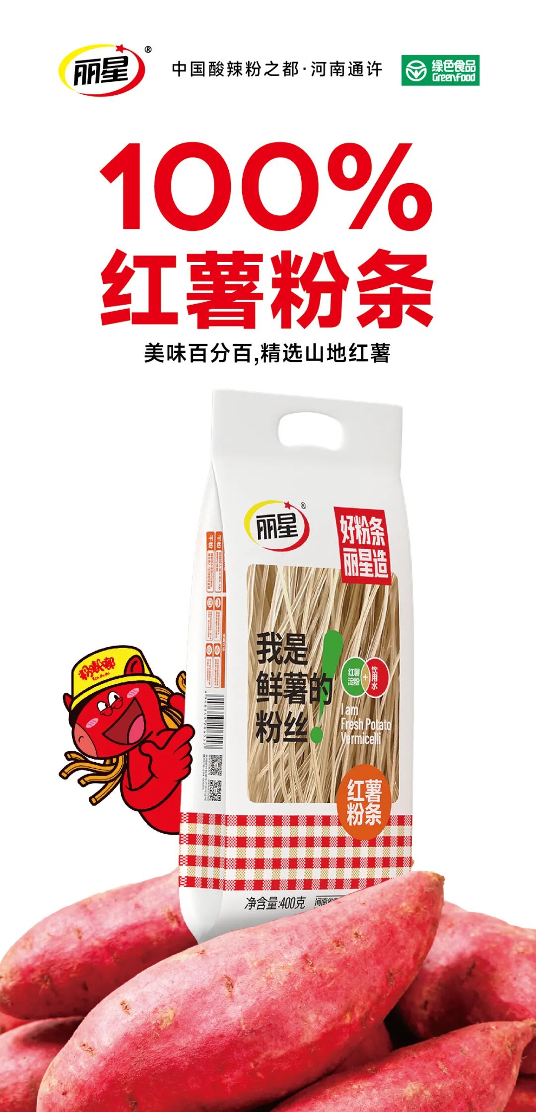 丽星首创涂布工艺,粉条生产过程中0添加明矾,配料表只有红薯淀粉、饮用水、食用盐。劲道爽滑,是火锅、炖菜、凉拌的百搭之选。